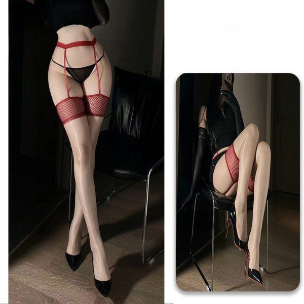 storeago00392dknalzth33 超薄型メッシュサスペンダーストッキング(肌色・赤) オイリー テカテカストッキング オーロラ美脚 オープンガータースタイル F517